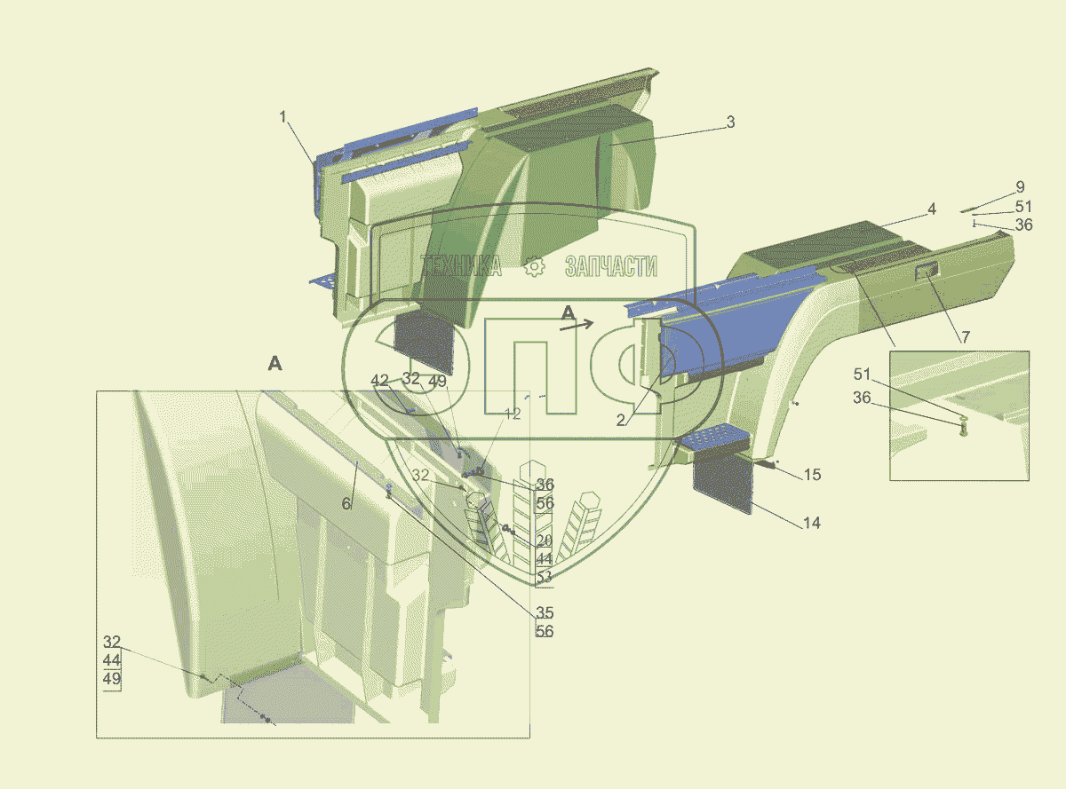 Каталог запасных частей к технике: МАЗ-5440E9. Установка оперения 6431-8400020-010