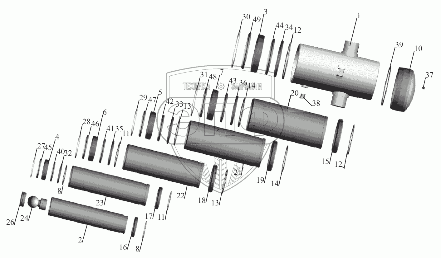 Каталог запасных частей к технике: МАЗ-551605. Гидроцилиндр 6501-8603510