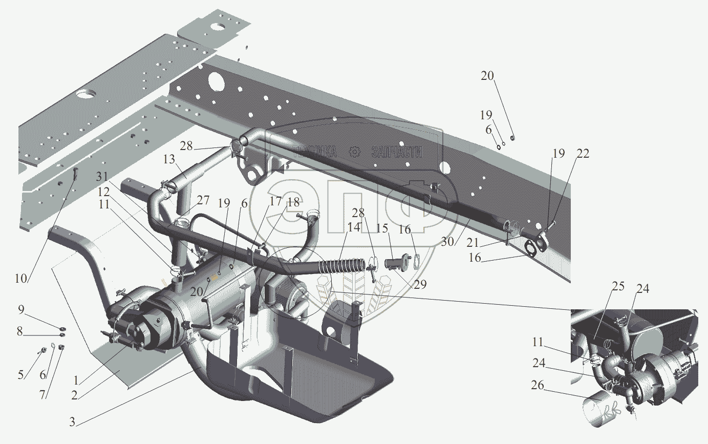 Каталог запасных частей к технике: МАЗ-551605. Крепление предпускового подогревателя 642290-1015001
