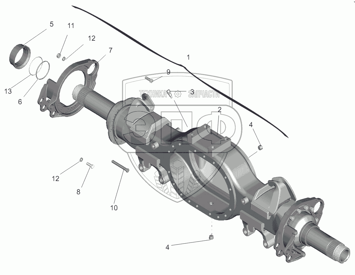 Каталог запасных частей к технике: МАЗ-551605. Мост задний. Картер моста