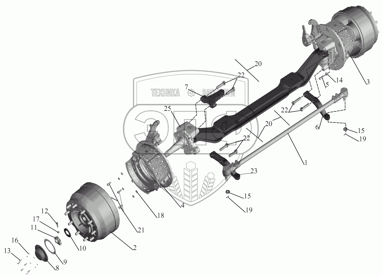 Каталог запасных частей к технике: МАЗ-551605. Передняя ось