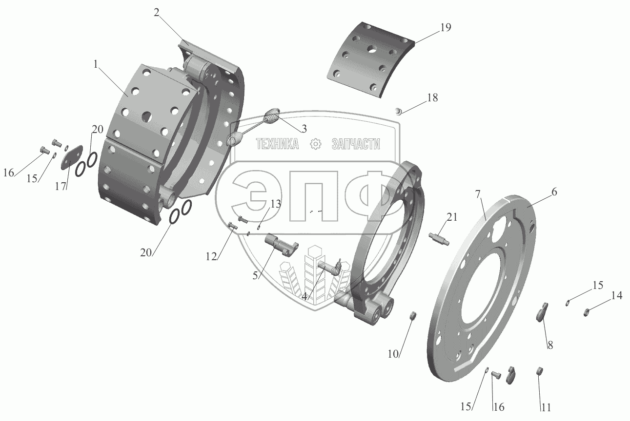 Каталог запасных частей к технике: МАЗ-551605. Тормоз колеса