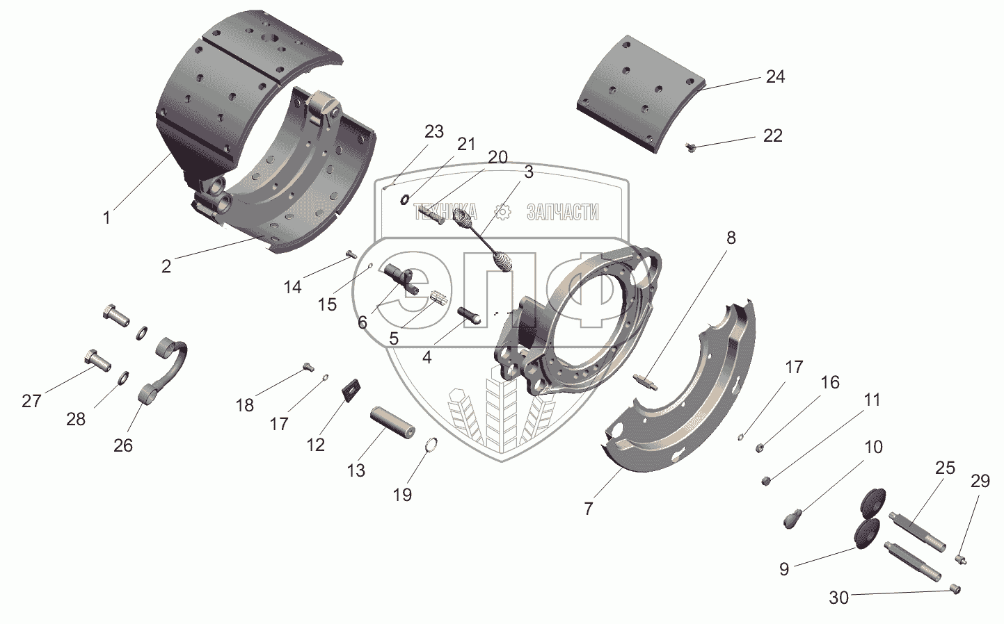 Каталог запасных частей к технике: МАЗ-551605. Тормоз колеса заднего моста