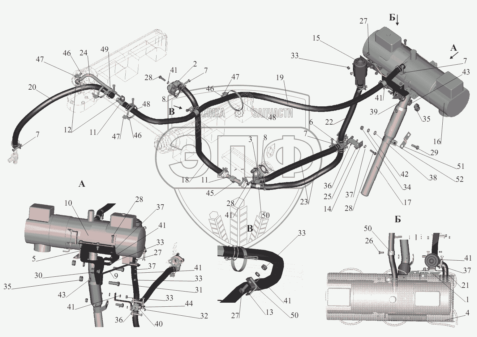 Каталог запасных частей к технике: МАЗ-551605. Установка подогревателя