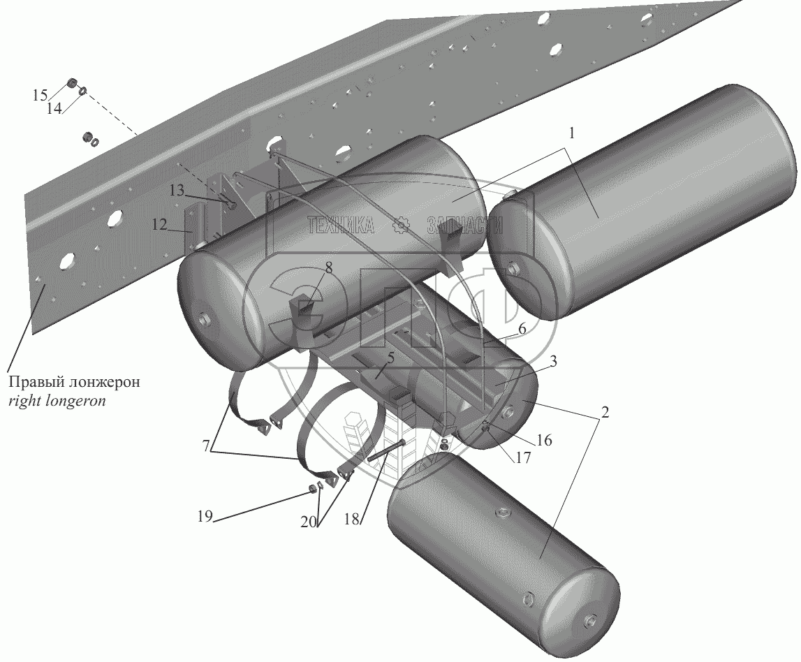 Каталог запасных частей к технике: МАЗ-551605. Установка ресиверов 551605-3513004