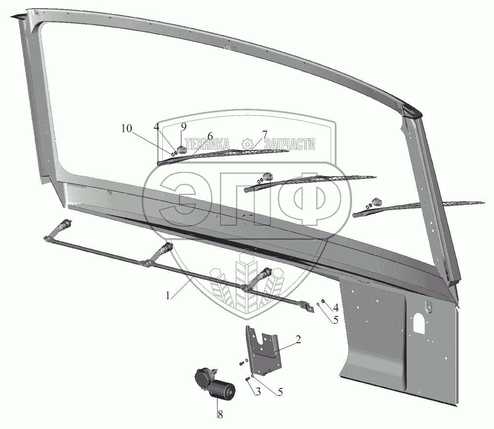 Каталог запасных частей к технике: МАЗ-551605. Установка стеклоочистителя 64221-3700041-010