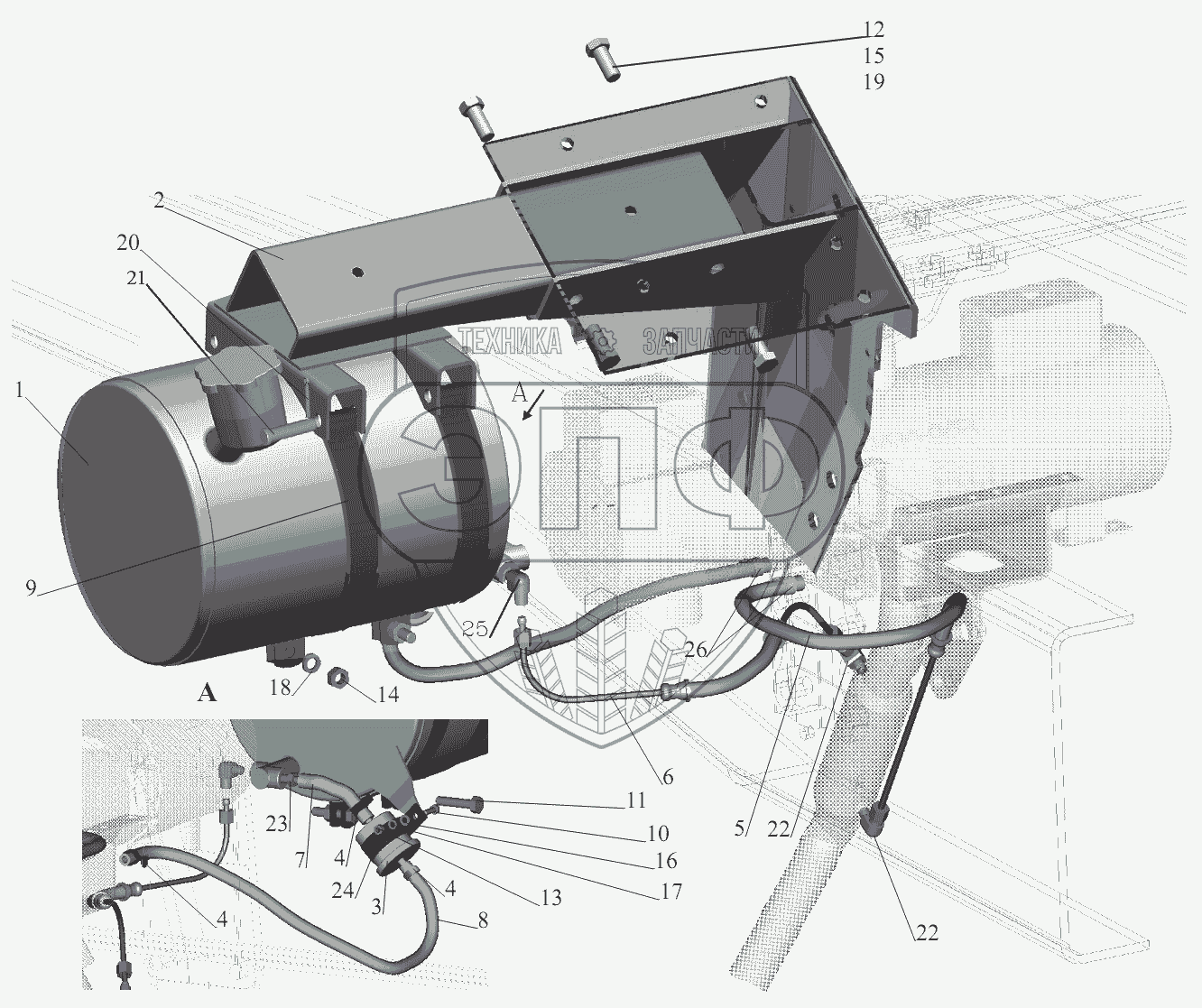 Каталог запасных частей к технике: МАЗ-551605. Установка топливопроводов подогревателя