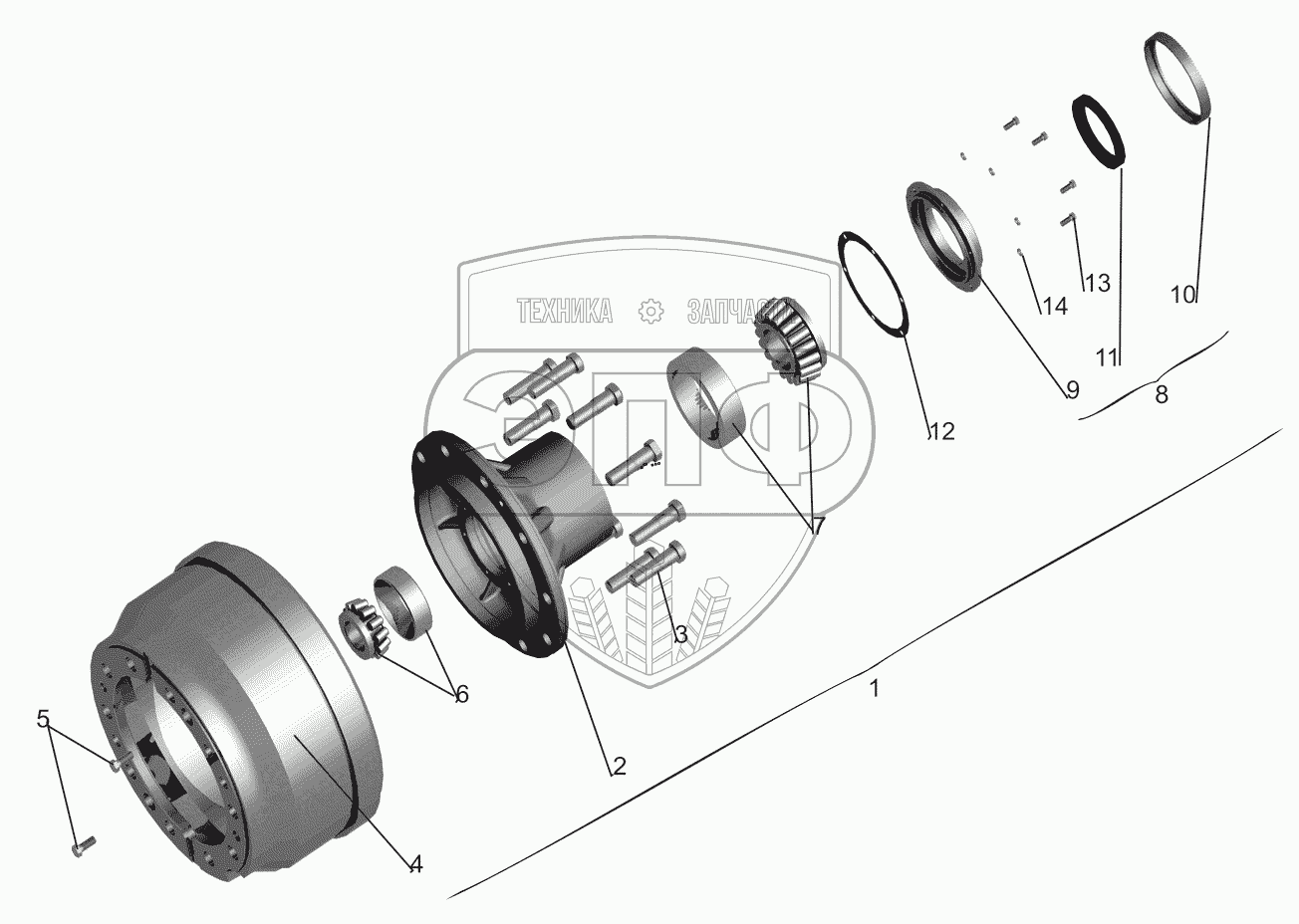 Каталог запасных частей к технике: МАЗ-551608, 630308. Ступица переднего колеса