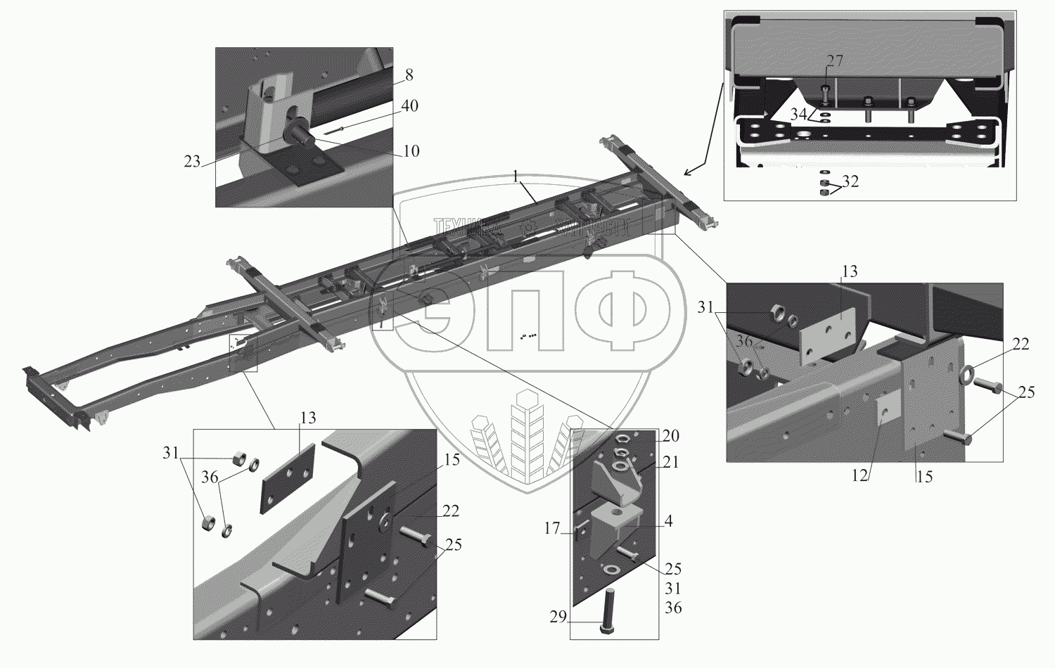Каталог запасных частей к технике: МАЗ-551608, 630308. Установка надрамника 551608-8600002