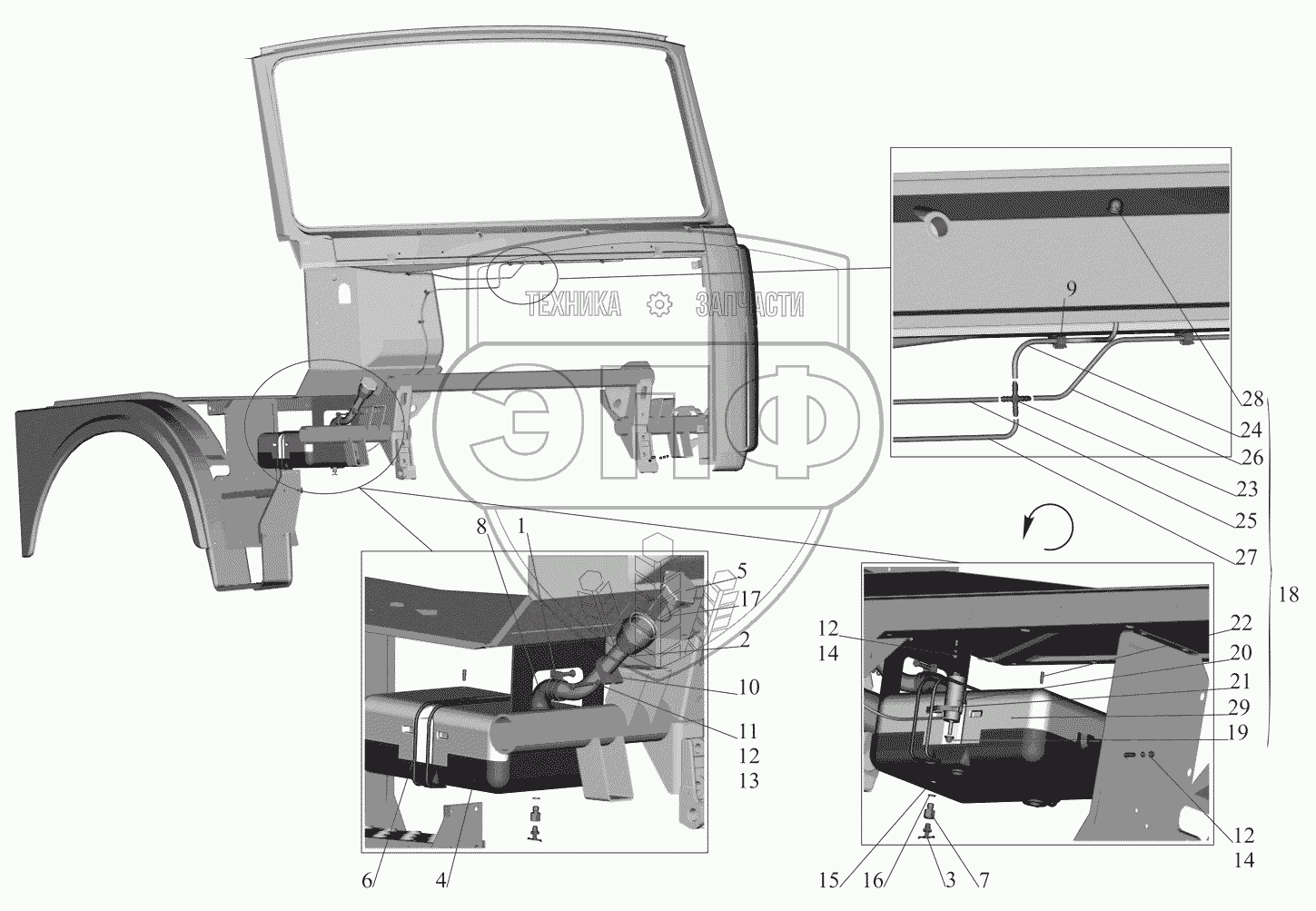 Каталог запасных частей к технике: МАЗ-551608, 630308. Установка омывателя