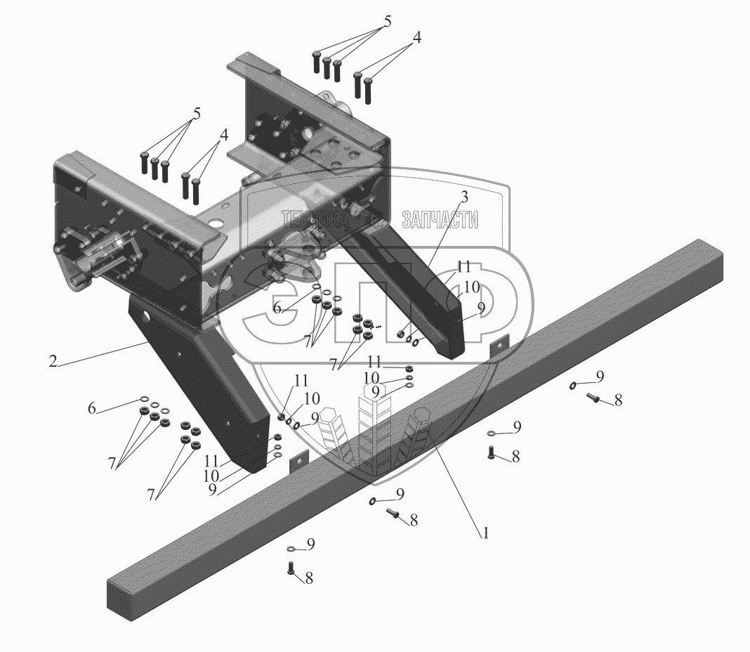 Каталог запасных частей к технике: МАЗ-551608, 630308. Установка заднего бампера