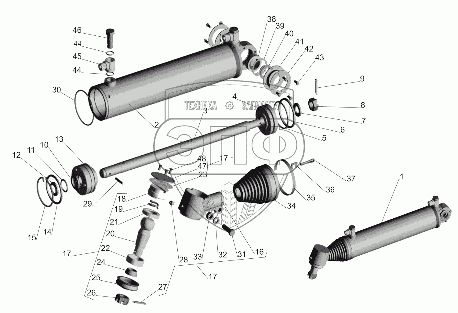 Каталог запасных частей к технике: МАЗ-551669. Силовой цилиндр гидроусилителя рулевого управления