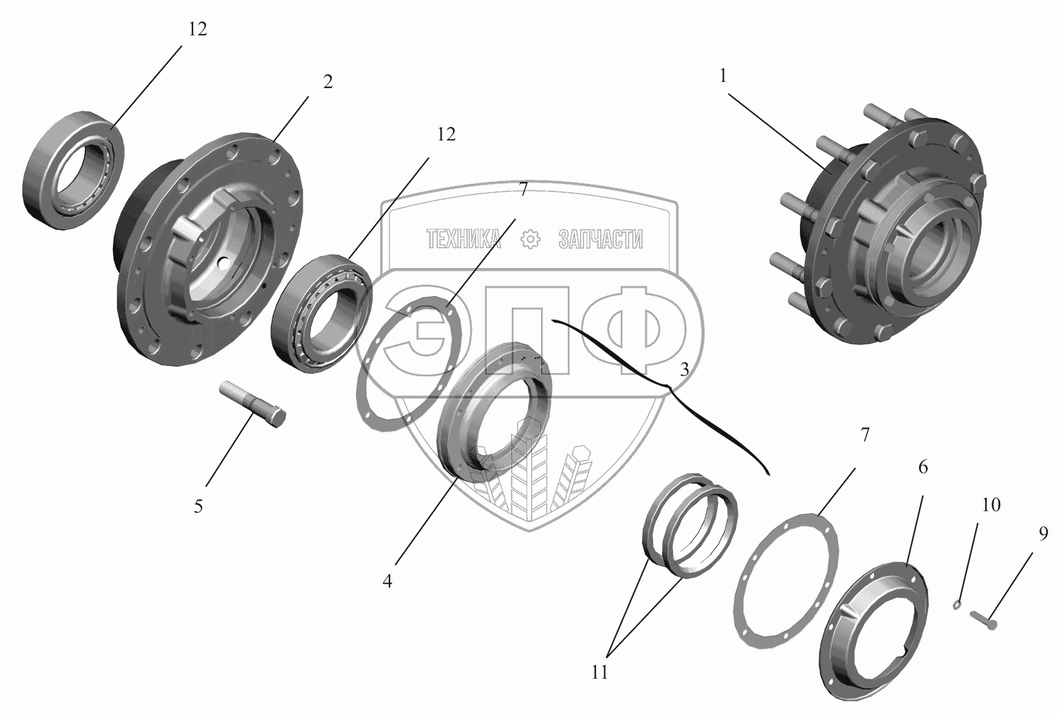 Каталог запасных частей к технике: МАЗ-551669. Ступица среднего моста
