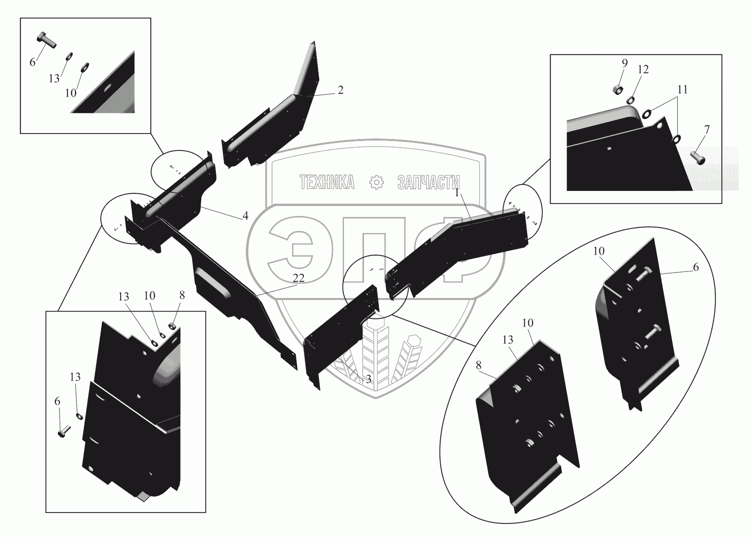 Каталог запасных частей к технике: МАЗ-551669. Установка экранов 642208-8400030-070