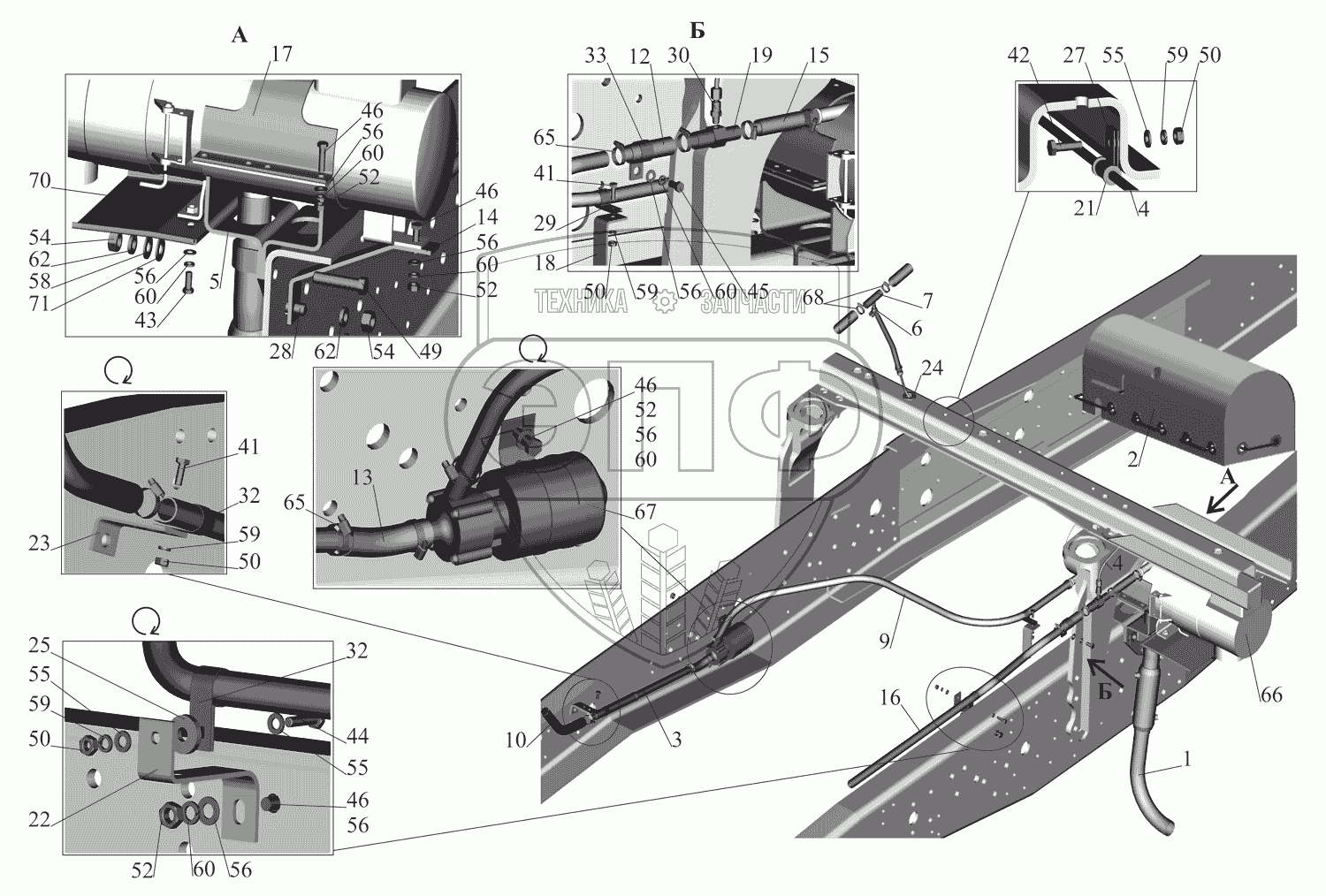 Каталог запасных частей к технике: МАЗ-551669. Установка подогревателя 551669-1015001