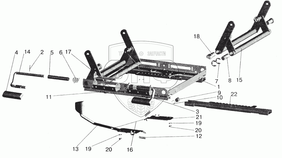 Каталог запасных частей к технике: МАЗ-5516 (2003). Механизм регулирования высоты