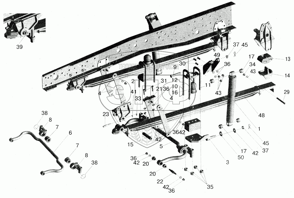 Каталог запасных частей к технике: МАЗ-5516 (2003). Подвеска передняя 543208-2900001