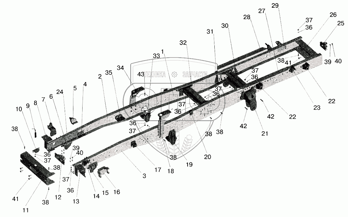 Каталог запасных частей к технике: МАЗ-5516 (2003). Рама 543205, 543208-пневмоподвеска