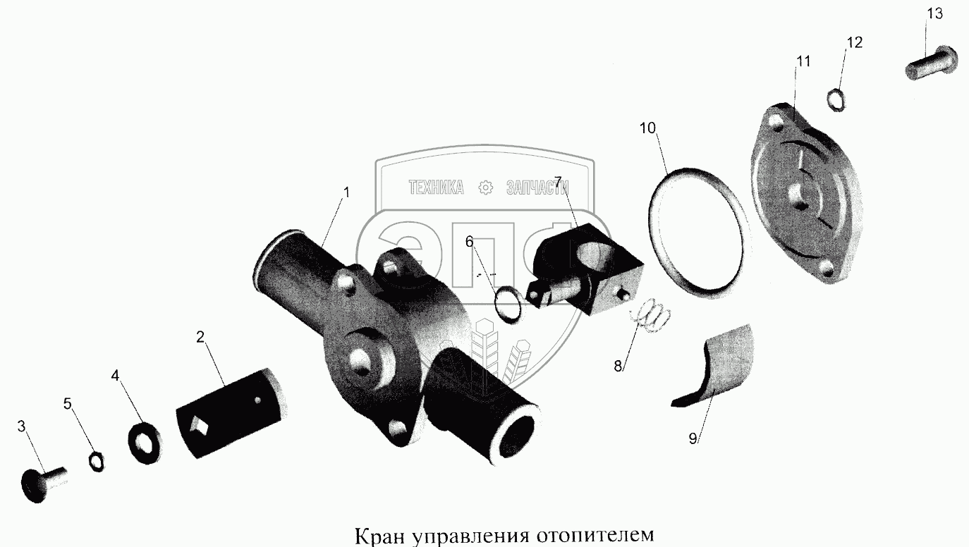 Каталог запасных частей к технике: МАЗ-5516А5. Кран управления отопителем