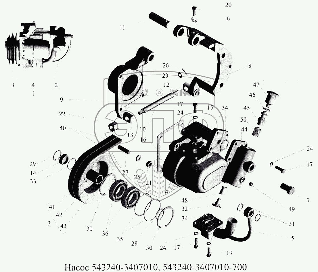 Каталог запасных частей к технике: МАЗ-5516А5. Насос 543240-3407010 (-700)