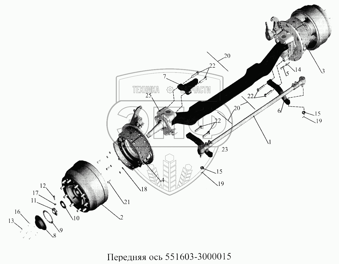 Каталог запасных частей к технике: МАЗ-5516А5. Передняя ось 551603-3000015