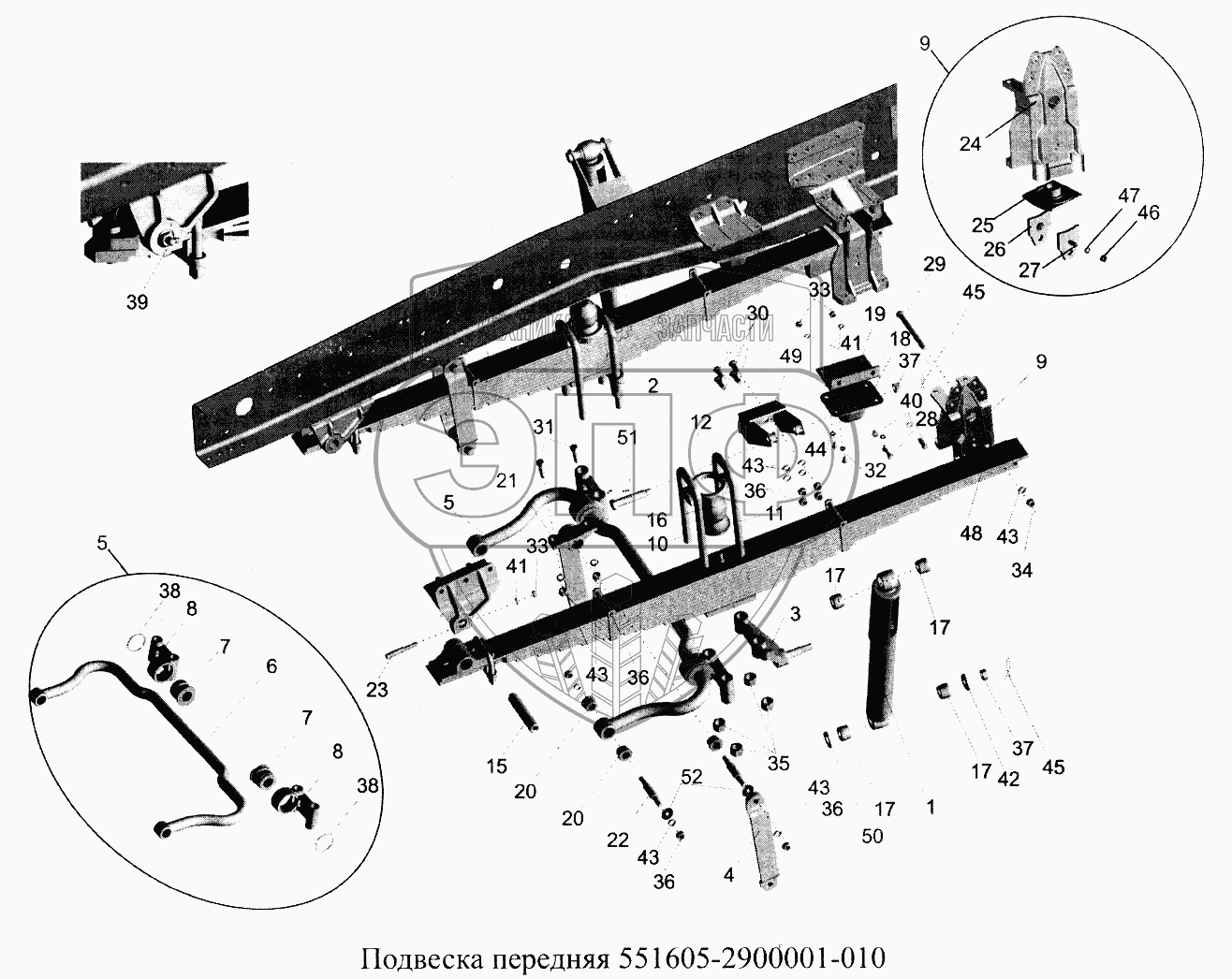 Каталог запасных частей к технике: МАЗ-5516А5. Подвеска передняя 551605-2900001-010