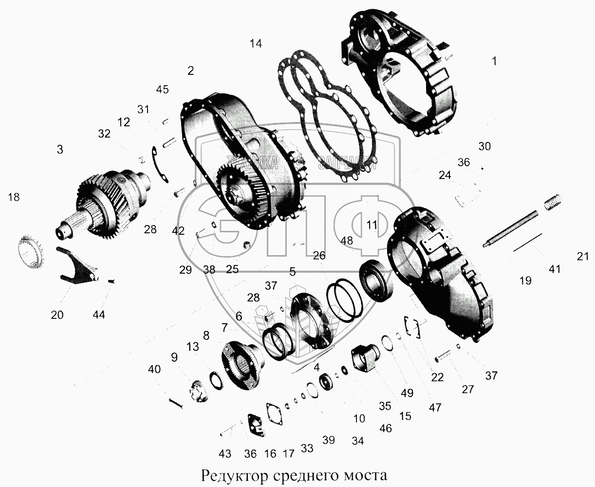 Каталог запасных частей к технике: МАЗ-5516А5. Редуктор среднего моста