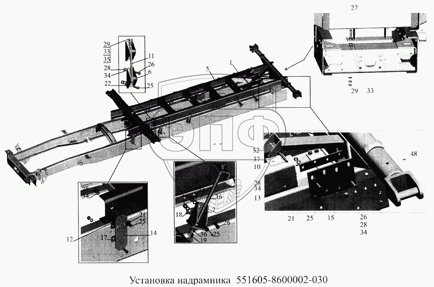 Каталог запасных частей к технике: МАЗ-5516А5. Установка надрамника 551605-8600002-030