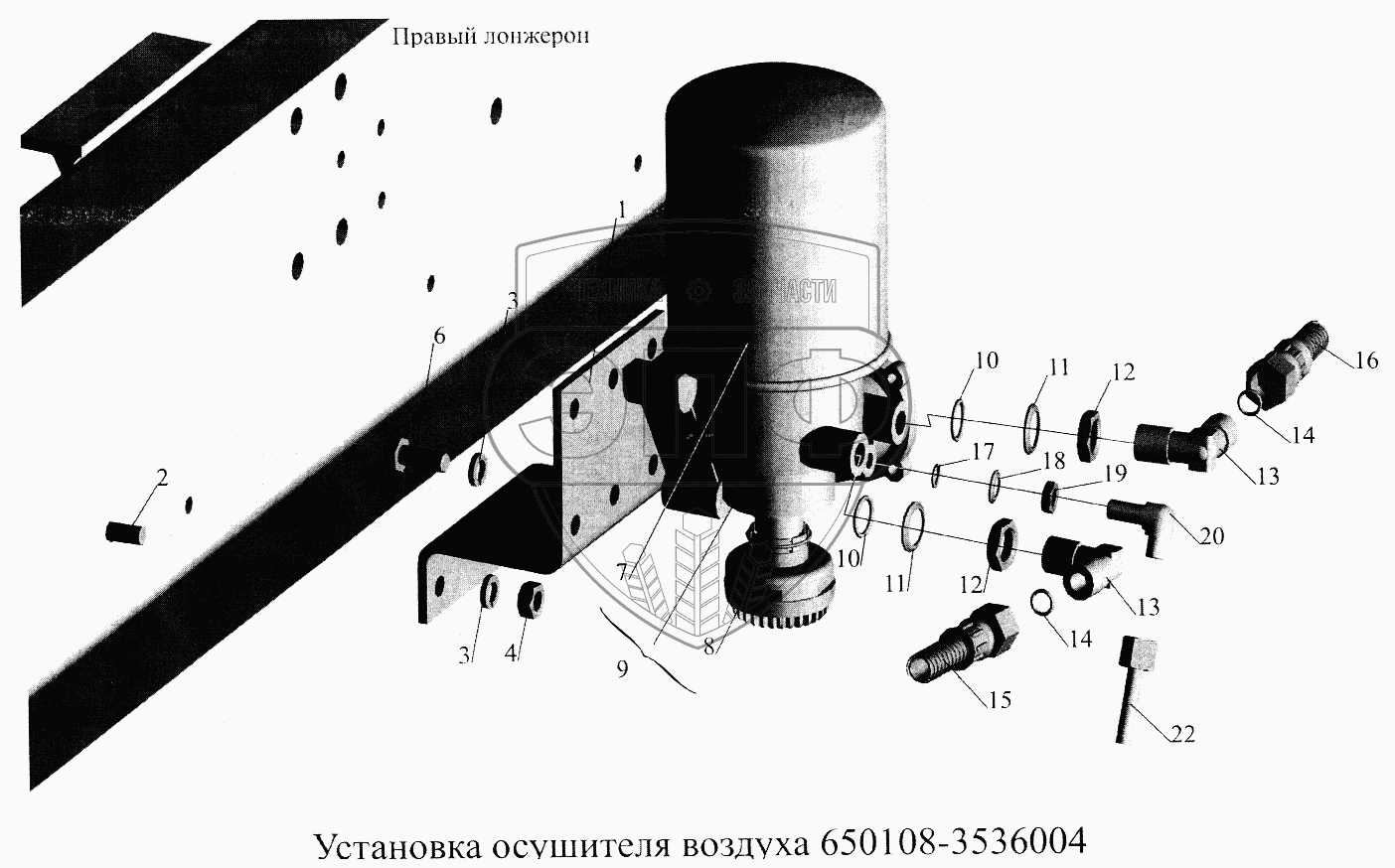 Каталог запасных частей к технике: МАЗ-5516А5. Установка осушителя воздуха 650108-3536004