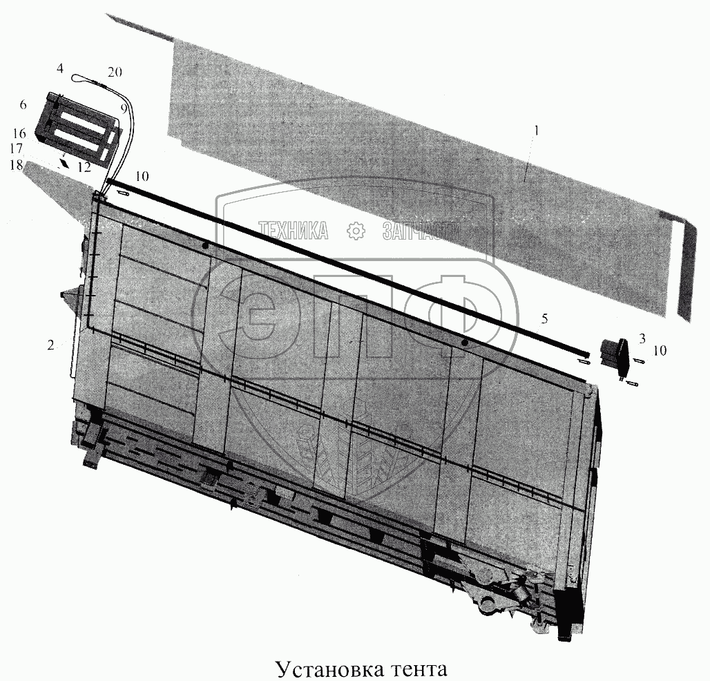 Каталог запасных частей к технике: МАЗ-5516А5. Установка тента