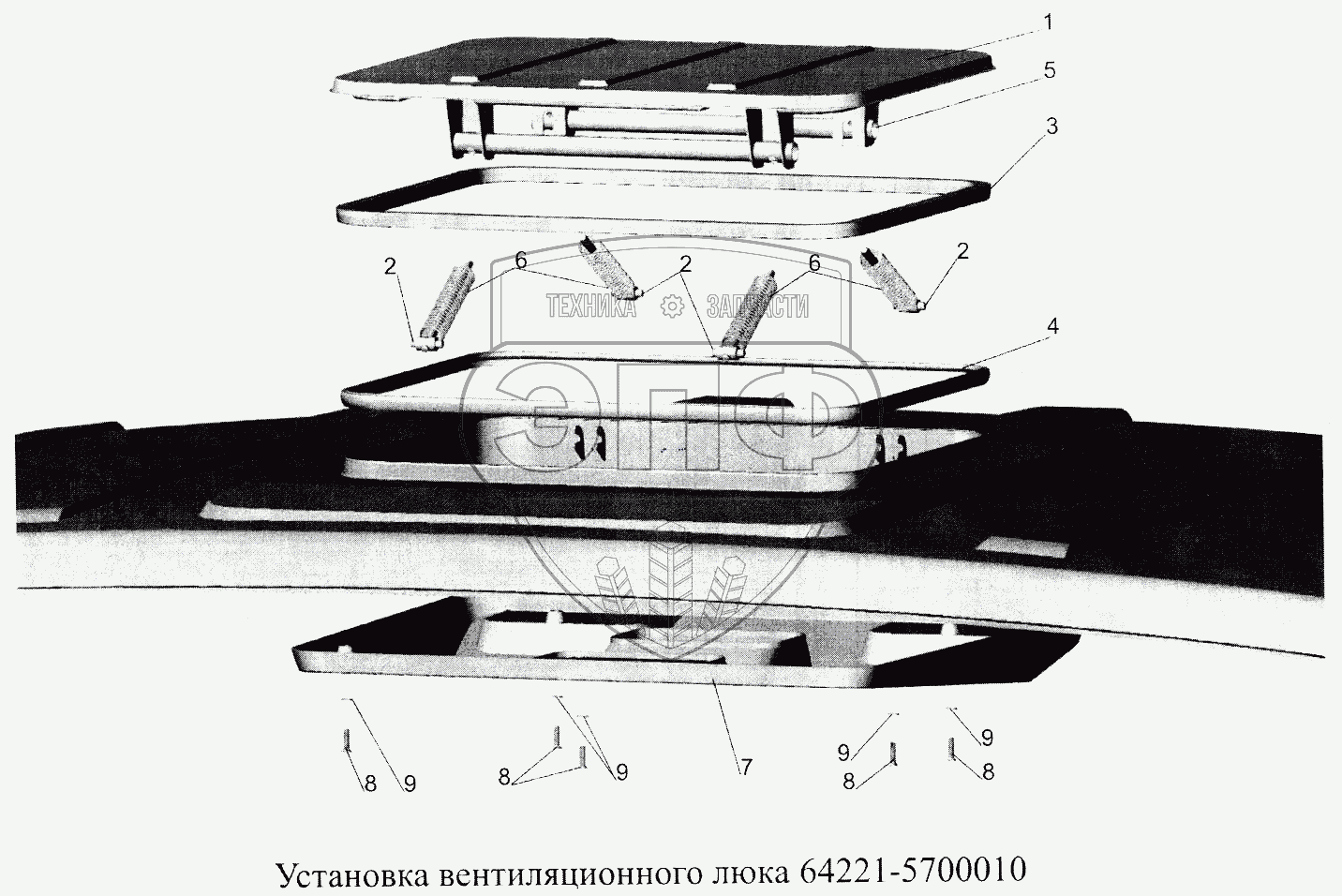 Каталог запасных частей к технике: МАЗ-5516А5. Установка вентиляционного люка 64721-5700010