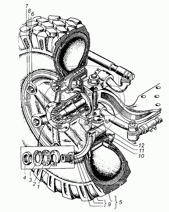Каталог запасных частей к технике: МАЗ-5549. Крепление переднего колеса