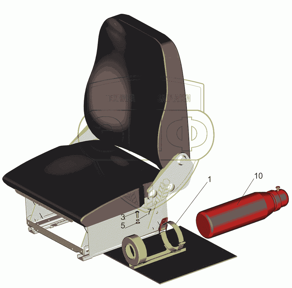 Каталог запасных частей к технике: МАЗ-5550V3 (V5). Установка огнетушителя 6501-3910040