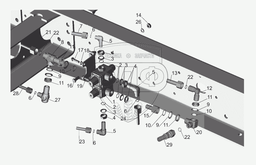 Каталог запасных частей к технике: МАЗ-555142. Крепление четырехконтурного клапана 5551-3515002