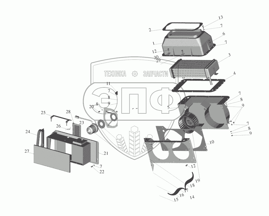 Каталог запасных частей к технике: МАЗ-555142. Отопитель