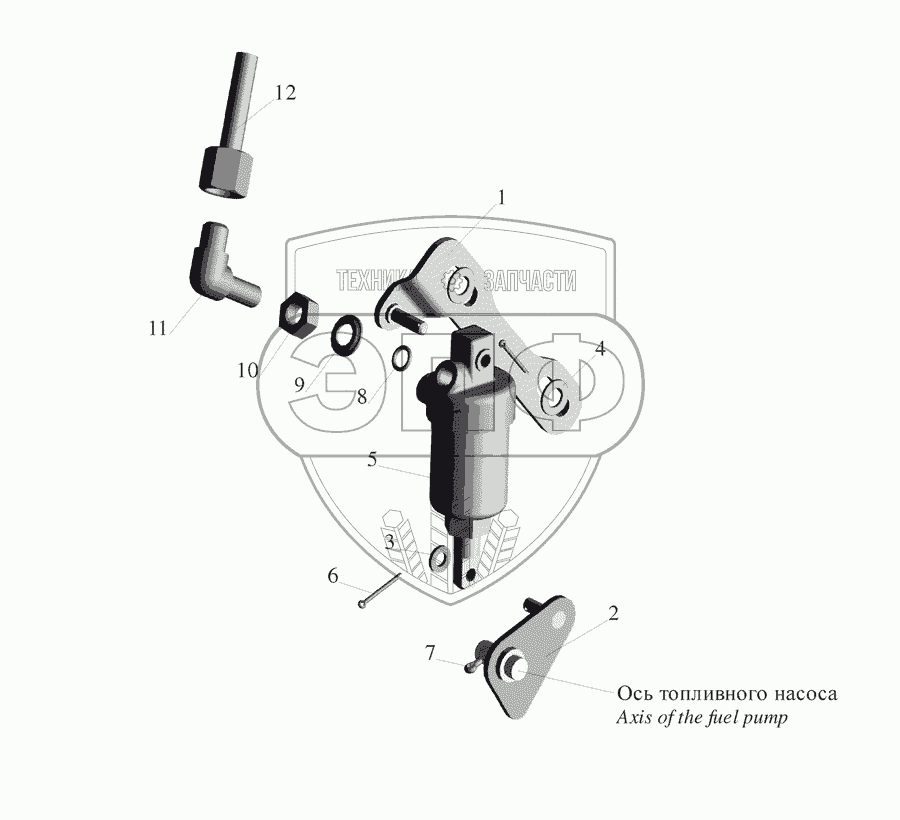 Каталог запасных частей к технике: МАЗ-555142. Цилиндр останова двигателя 543205-3570004