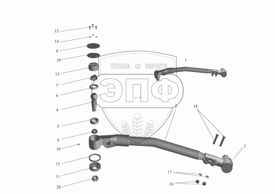 Каталог запасных частей к технике: МАЗ-555142. Тяга продольная 5551-3003010-30