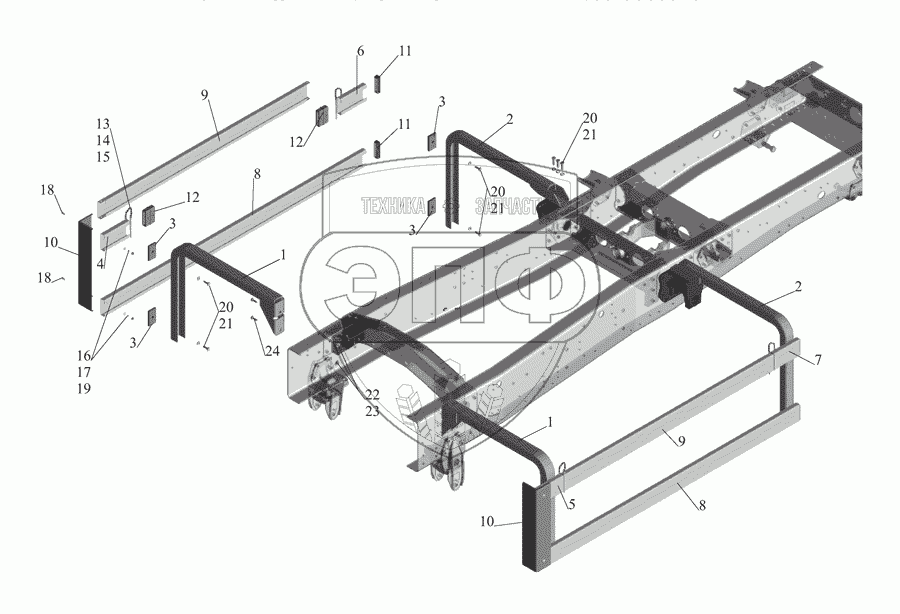 Каталог запасных частей к технике: МАЗ-555142. Установка бокового ограждения 555102-2800040