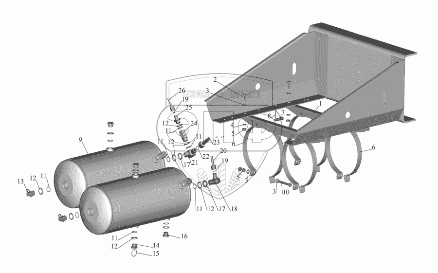 Каталог запасных частей к технике: МАЗ-555142. Установка ресивера 555102-3513006
