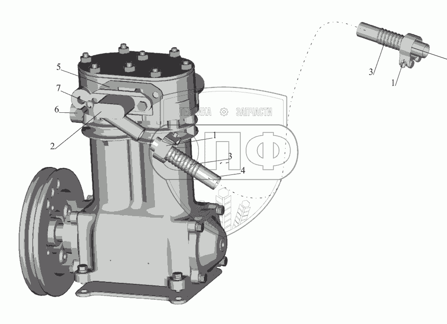 Каталог запасных частей к технике: МАЗ-555142. Установка шланга пневмокомпрессора