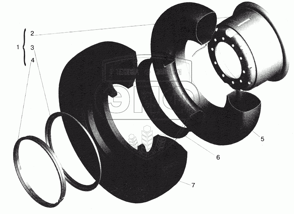 Каталог запасных частей к технике: МАЗ-5551 (2003). Колесо, камера и покрышка