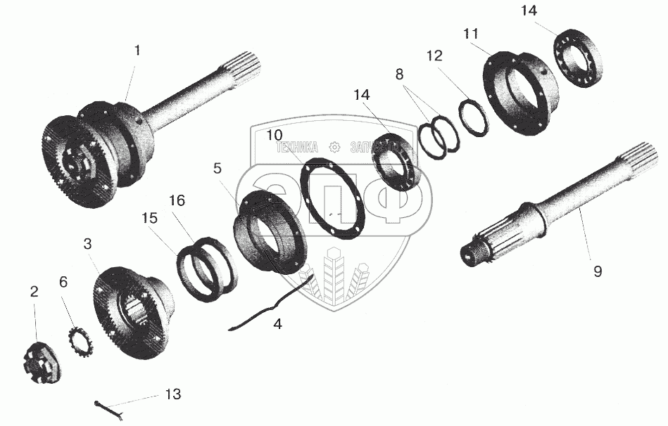 Каталог запасных частей к технике: МАЗ-5551 (2003). Мост средний. Вал задний