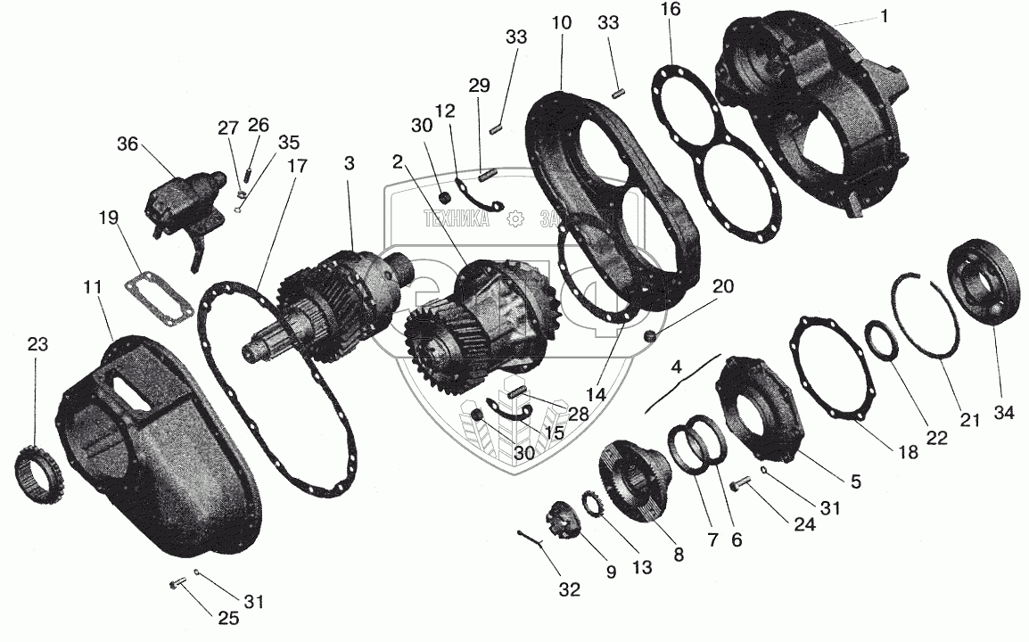 Каталог запасных частей к технике: МАЗ-5551 (2003). Редуктор среднего моста