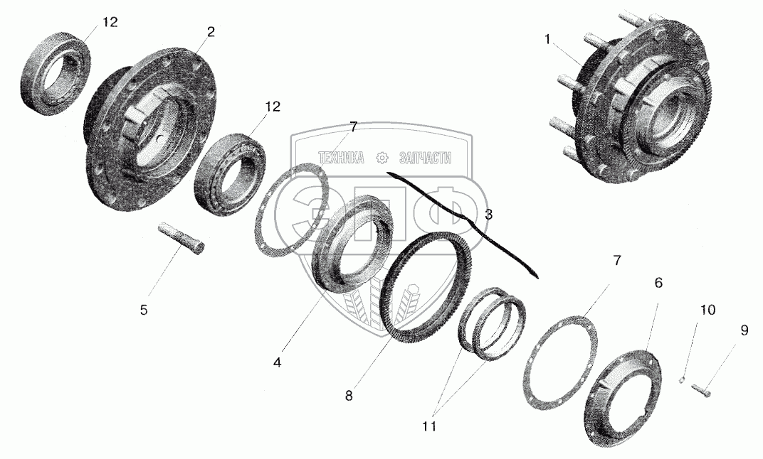 Каталог запасных частей к технике: МАЗ-5551 (2003). Ступица моста