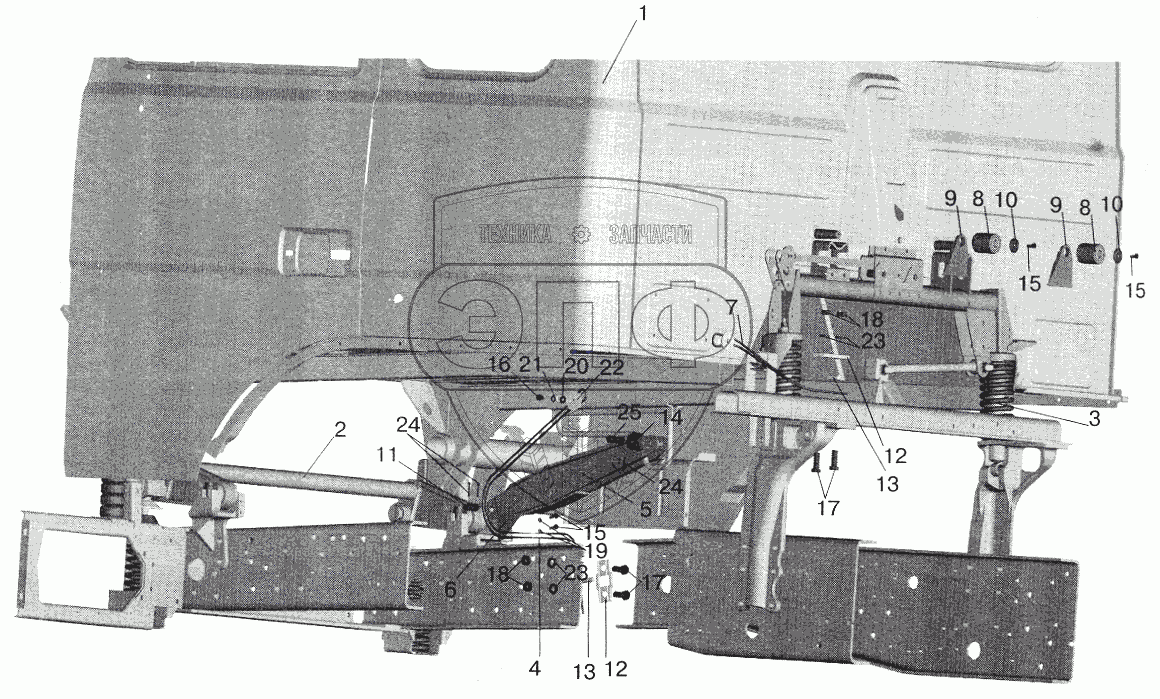 Каталог запасных частей к технике: МАЗ-5551 (2003). Установка большой кабины