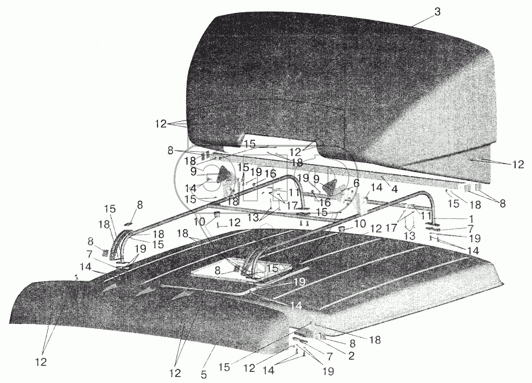 Каталог запасных частей к технике: МАЗ-5551 (2003). Установка обтекателей