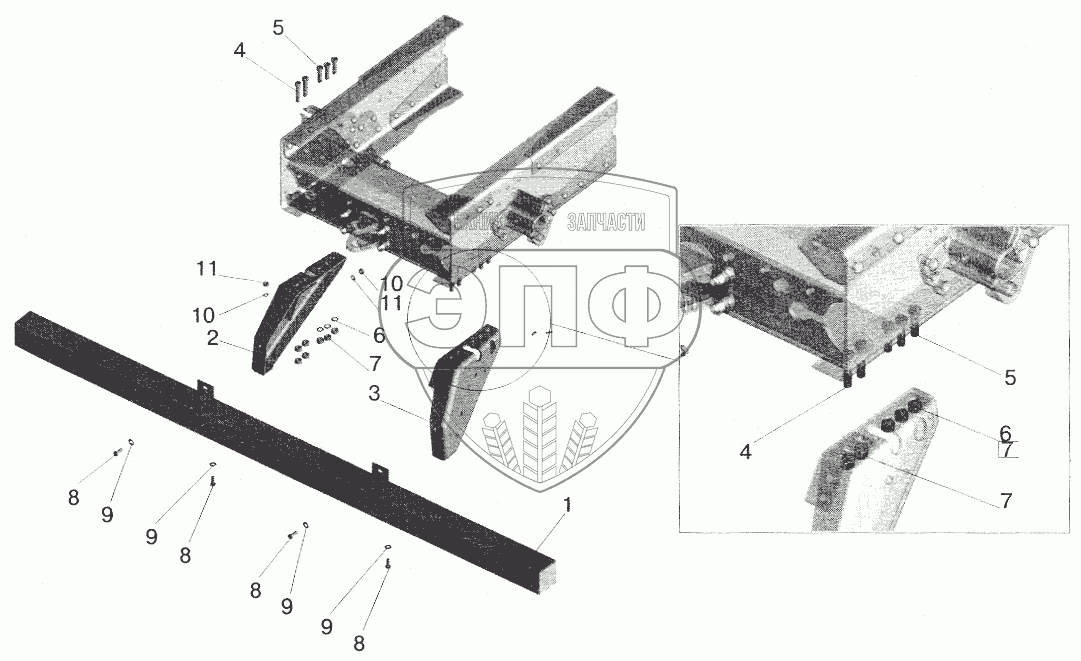 Каталог запасных частей к технике: МАЗ-5551 (2003). Установка заднего бампера