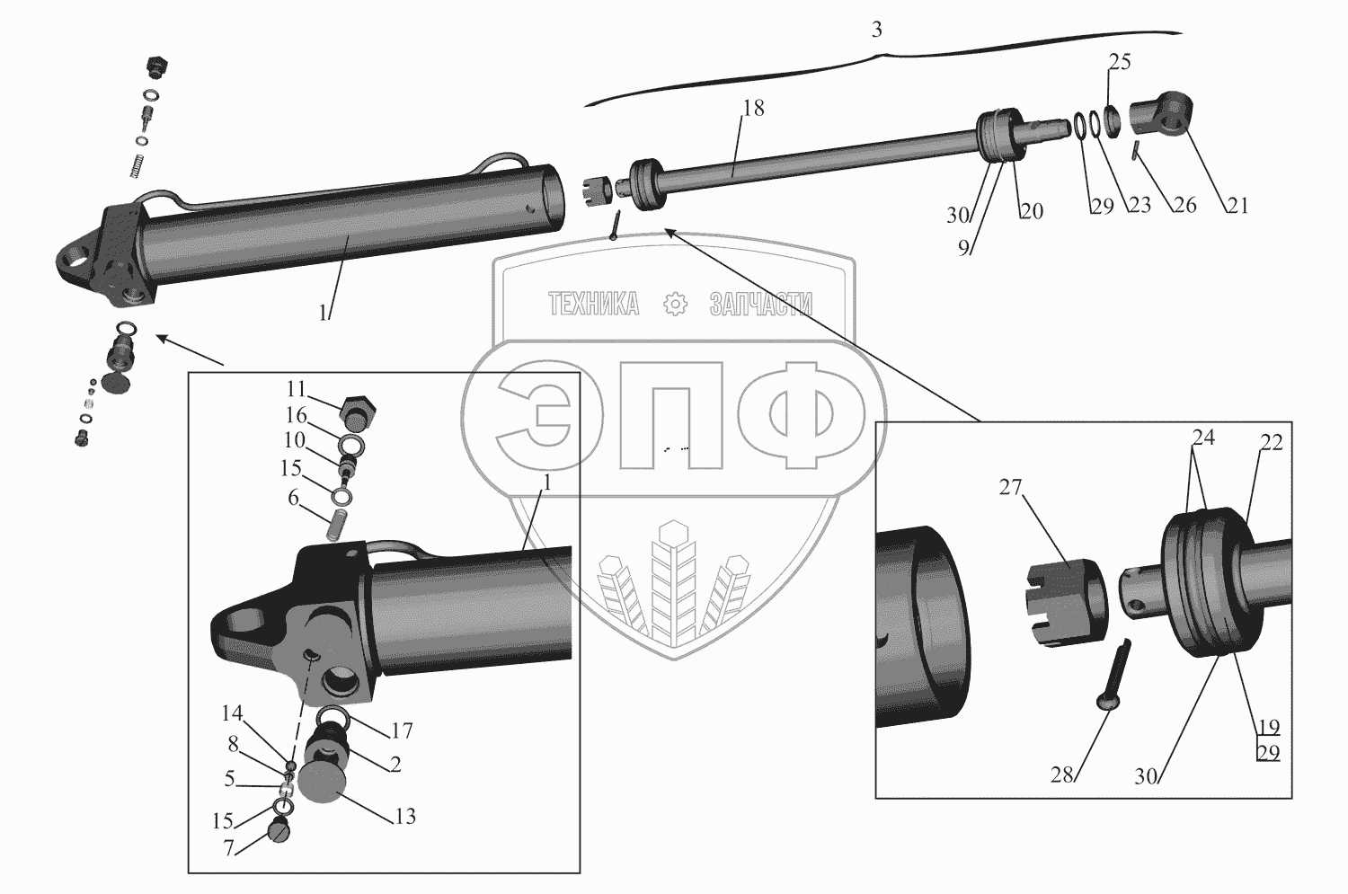 Каталог запасных частей к технике: МАЗ-630333. Гидроцилиндр 64221-5003010