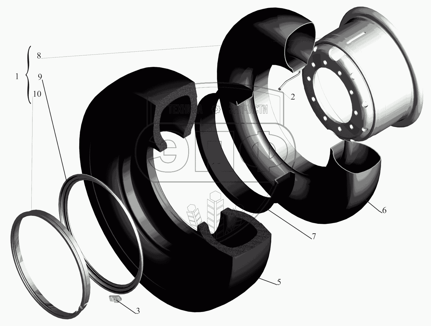Каталог запасных частей к технике: МАЗ-630333. Колесо, камера и покрышка