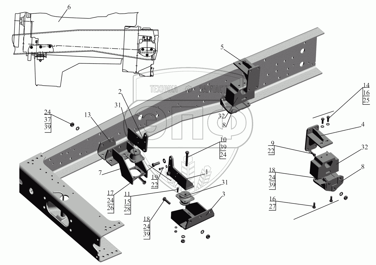 Каталог запасных частей к технике: МАЗ-630333. Крепление двигателя